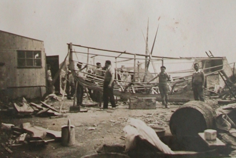La carte postale annexée en illustration présente une façade antérieure à trois travées ouverte d'une porte d'entrée axiale. L'édifice serait donc à l'origine un édifice de type ternaire. L'histoire des petits chantiers de construction navale de Locquémeau reste encore à étudier, afin de comprendre ces modes de construction sardinière.