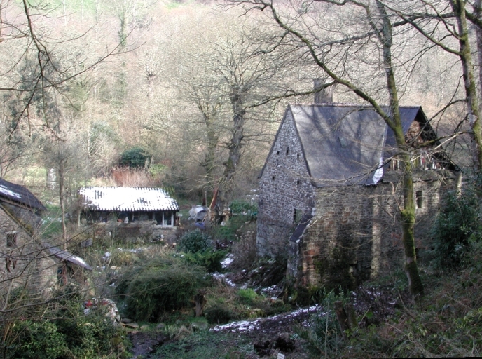 Moulin à deux corps en équerre construit en granite et schiste. Il se compose d'un étage de soubassement, d'un rez-de-chaussée surélevé à probable vocation d'habitation et d'un grenier. Des trous de boulin sont visibles sur le pignon nord-ouest. Le site conserve également des vestiges des aménagements hydrauliques et comprend un logement à deux pièces au rez-de-chaussée fortement remanié.