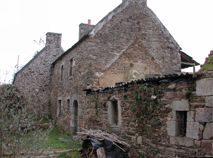 Les bâtiments de cette ferme sont construits en schiste et granite. Ils étaient autrefois couverts de chaume (d'après photographie ancienne). Cette ferme conserve une partie ancienne composée d'un logis sur étable de plan massé, simple en profondeur, à double orientation, comprenant un bâtiment agricole en retour d'équerre à l'avant. Ce corps de logis est également flanqué, à gauche, d'un logement de plan rectangulaire massé à pièce unique au rez-de-chaussée. Le logis sur étable est ouvert à l'arrière d'une porte à arc en anse de panier chanfreiné située au droit de la porte d'entrée de l'étable. Le logement, en mauvais état, est ouvert à l'avant d'une porte en plein-cintre chanfreinée et d'une fenêtre à traverse. Il est ouvert également à l'arrière d'une petite fenêtre surmontée d'un linteau en accolade orné de moulurations. Cette ferme présente également, au nord de la cour, un bâtiment de plan rectangulaire réunissant sous un même toit une grange à porte charretière en façade et une ancienne étable à chevaux.