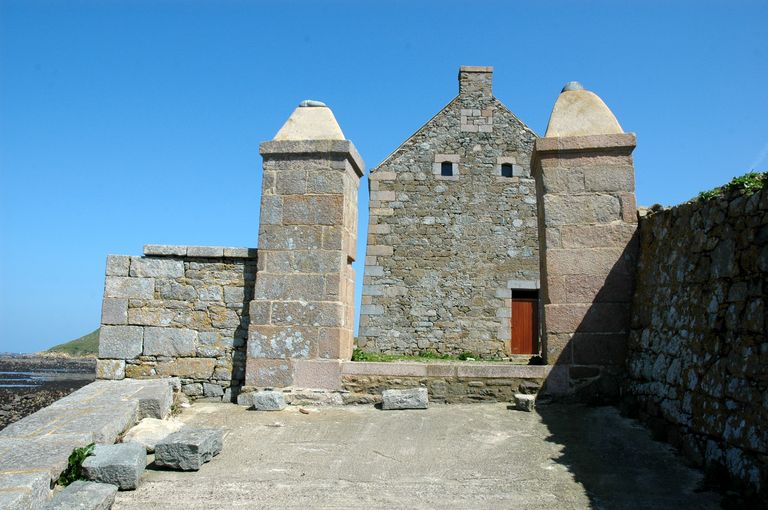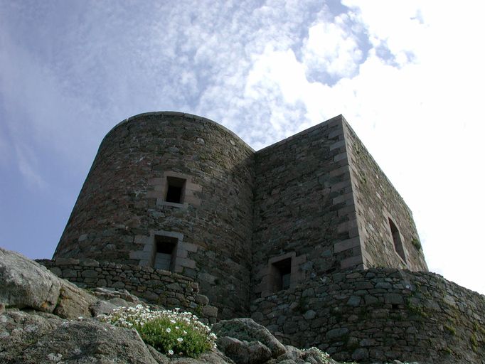 Au cours de ses tournées d´exploration et d´inspection sur les côtes de Saint-Malo, Vauban fut poursuivi par des chaloupes anglaises en revenant du fort La Latte en 1694. Cet épisode malheureux fit dire au Roi la nécessité de "mettre du canon" dans l´archipel des Sept-îles en face de Perros-Guirec qui servait de refuge aux corsaires... La batterie évoquée par le Roi lui- même en avril 1694, projetée sur papier en 1718 et 1739 ne trouva un début de réalisation qu´en février 1740 avec la construction d´un fort sur l'île aux Moines disposant de batteries couvrant toutes les approches, redoute, caserne et même potager (pour occuper les soldats...). Garangeau, architecte et ingénieur du Roi, directeur des fortification de Saint-Malo (couvrant le territoire allant du Couësnon au château du Taureau en baie de Morlaix) a alors 89 ans. Il concevra là son dernier fort qui sera achevé en 1746 par l´ingénieur Parrocel, de la famille des peintres de bataille (auteur notamment des peintures murales de l´Hôtel Royal des Invalides à Paris).