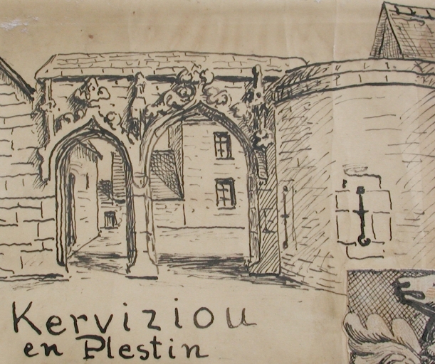 AD Côtes-d'Armor : fonds Frotier de La Messelière, 60 J 228 : planches de dessins de monuments et de sculptures, recueil in-plano (Quintin-Avaugour, Corlay et Trégor-Goëlo : 40 planches).
