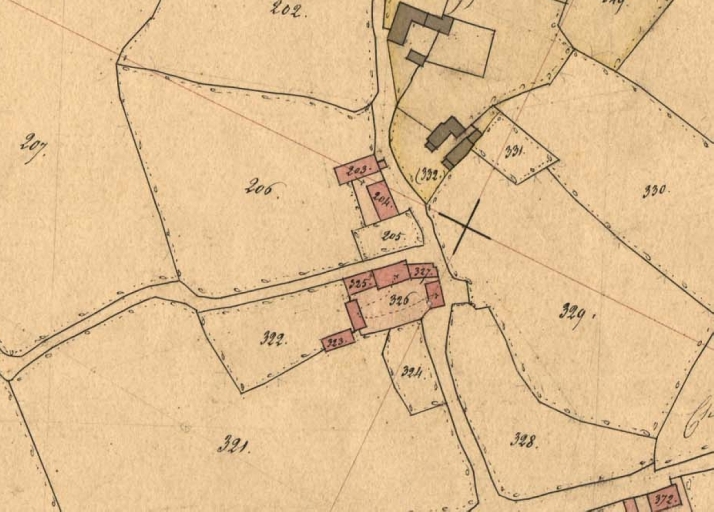 La datation des bâtiments de cette ancienne ferme est comprise entre le 17ème siècle et la 2ème moitié du 19ème siècle. Elle comprend : - un logis déclassé datant du 17ème siècle ; - un logis construit en 1842 (porte la date et le nom des commanditaires) et des dépendances agricoles construites entre 1814 et 1848 (d'après analyse des plans cadastraux parcellaires de la 1ère moitié du 19ème siècle) ; - un logement datant de la 2ème moitié du 19ème siècle.