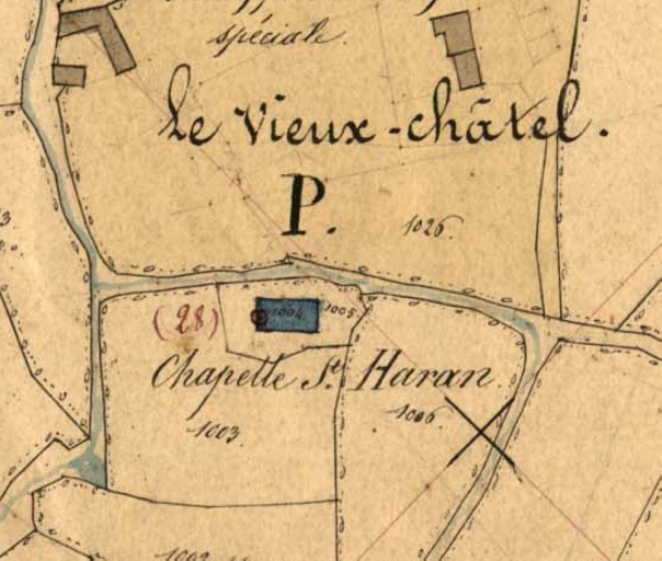 L'actuelle chapelle Saint-Haran fut construite en 1713 (porte la date) à l'emplacement d'une chapelle déclarée en ruine en 1703, dont l'évêque de Tréguier autorisa la reconstruction en 1706 (d'après René Couffon). Elle fut vendue à Yves Thomas le 29 octobre 1806 puis donnée à la fabrique le 5 juin 1816. Selon René Couffon l'acte de donation signalait la présence d'un cimetière autour de la chapelle.