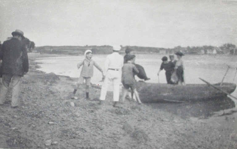Selon la tradition orale et les archives écrites, le bac du Douron remonte au moins au 17ème siècle. Sur le gué du Douron, les charrettes pouvaient passer à marée basse et accoster sur la rive gauche « finistérienne » devant le manoir Leingouez, appelé aussi la Tour d'Argent. Ses propriétaires, usant du droit féodal, entretenaient un train de bacs indispensables à pleine mer, un grand bac et un petit pour les gens et trois bacs pour les bestiaux. D'autres exploitants vont se succéder au cours des siècles : les Kergadiou, les Coatcaric et les Coetmen. En 1646, un des bacs chavira, avec ses passagers qui se rendaient au pardon du Yaudet. 50 personnes se noyèrent, pendant qu'une dizaine d'autres fut secourue par des marins anglais chargeant de l'orge sur le port. L'état des passages sur les rives du Douron et les accidents qui s'y produisaient régulièrement justifiaient au début du 19ème siècle la construction d'un pont sur le Douron : "Tous les ans, deux à trois personnes y trouvent la mort, cinq à six charrettes y sont abandonnées" [s.d.] (AD 22, S. sup. 165). La construction d'un premier bac interdépartemental est datée de 1812 (AD 22 série 11/S7, 153-155). Une cabane pour le fermier (fermage du bas) fut construite en 1849. En 1865, trois embarcations de passage étaient en fonctionnement. Les bacs étaient l'objet d'un fermage par adjudication pour la perception des droits (pour une durée variable de 2 à 6 ans). En 1901, le cahier des charges précisait le tarif des droits de passage d'eau, reconduit entre 1901 et 1906. Le bac fut supprimé à la construction du pont sur le Douron en 1937.