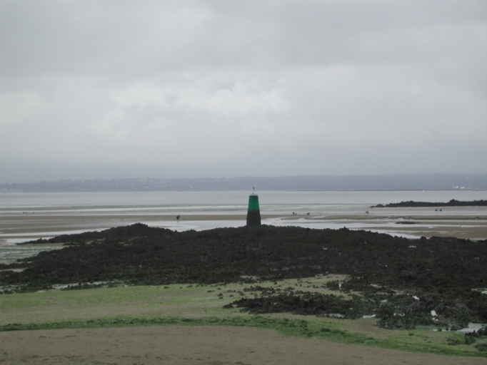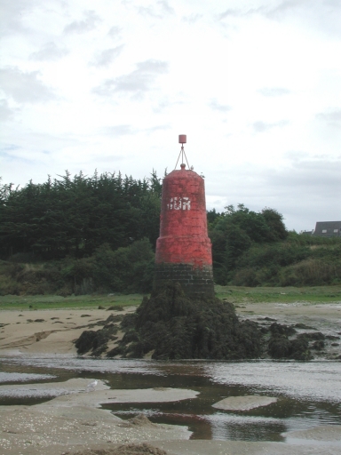Tourelle en pierres de granite maçonnée balisant le chenal d'accès de Toul an Héry. La balise a été peinte de couleur rouge après avoir été peinte de couleur noire.