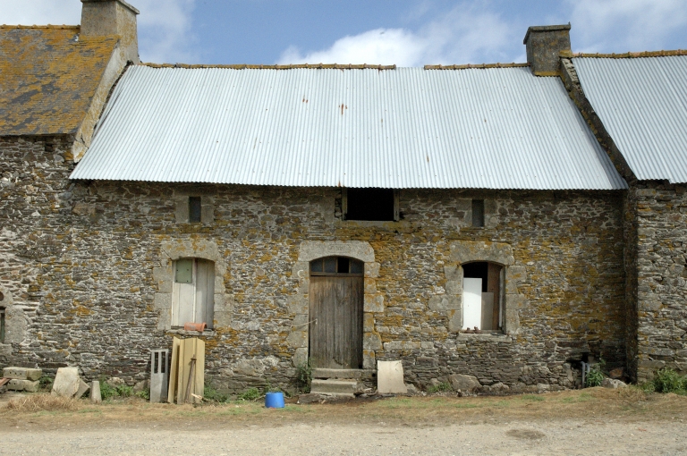 Ferme en alignement comprenant une étable, un logis principal à étage, un deuxième logis en rez-de-chaussée et une remise. L'ensemble est construit en moellon de schiste avec des baies en granite ; toitures en ardoise remplacées par de la tôle ondulée sur le logis 2 et la remise. Le logis principal porte sur une fenêtre du rez-de-chaussée un calice sculpté qui identifie le constructeur comme prêtre. Cette maison est la seule du canton à porter un calice.