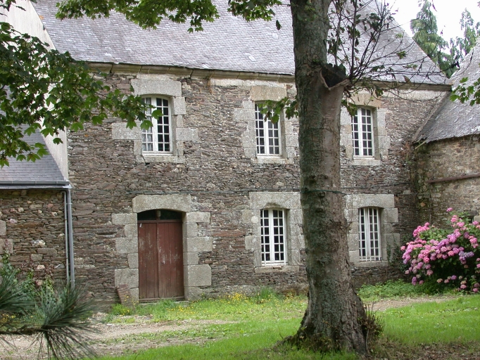 Maison à étage à trois travées avec porte d'entrée décentrée ; 2e logement en rez-de-chaussée à gauche et remise en retour à droite. Maison construite en moellon de schiste avec baies en granite à linteau échancré en segment ; corniche moulurée en pierre en façade. Le deuxième logis, remanié, a une porte en plein cintre et est construit en matériau mixte : présence d'adobe (pisé) en pignon ouest.