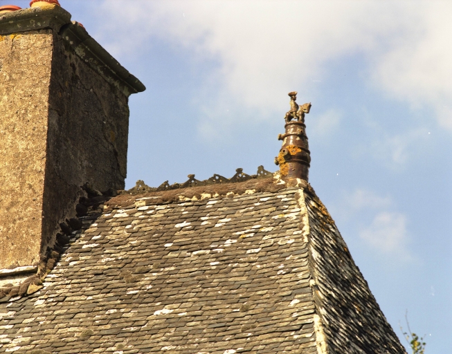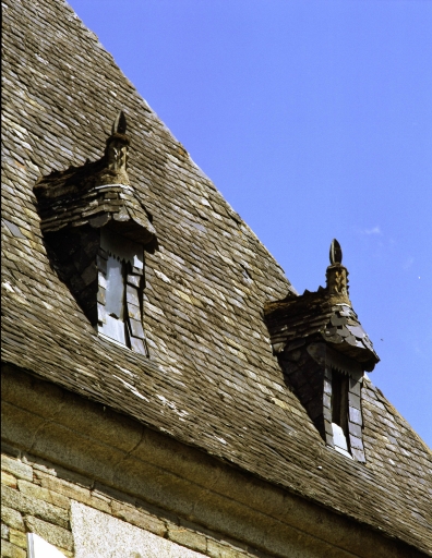 Manoir construit dans un site boisé, de plan allongé simple en profondeur comportant un corps principal ajouré de six travées de baies à arc en segment, et deux corps secondaires en retour d'équerre à l'est. Le toit à croupe est garni de petites lucarnes sur le pan couronnées d'épis de faîtage en terre cuite vernissée ; la partie centrale du toit est ornée d'un lignolet en ardoises repercées figurant deux personnages à cheval (?). Un élément en ferronnerie (girouette) complète ce décor.