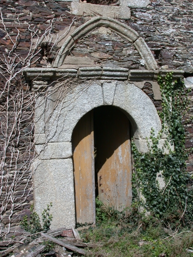 Maison de plan massé à une pièce par étage, totalement ruinée. La porte d'entrée est ornée d'un fronton mouluré.