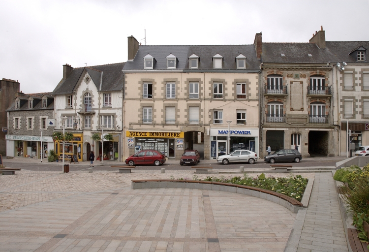 La ville de Loudéac ne comporte pas, dans l'état actuel, d'éléments antérieurs au 17e siècle : une maison à pan de bois sur la place de l'Eglise et la croix de la rue de Saint-Cado datent de cette période. Le 18e siècle est la période principale marquant un réel essor de la ville, ceci étant dû à l'activité toilière dont Loudéac était un centre important associé à Quintin et Uzel. Cette activité connaît une période de grande prospérité au cours du 18e siècle, prospérité qui rejaillit logiquement sur le développement de la ville et la construction immobilière, tant religieuse (l'église et son mobilier) que domestique et publique (l'hôpital). Cette période déborde légèrement sur le siècle suivant et nombre de maisons assez typées stylistiquement datent des premières années du 19e siècle. Voir les maisons de la rue de Pontivy, de la place au Fil, de la rue Notre-Dame et de la rue de Moncontour. Ensuite l'activité toilière, sous l'effet de plusieurs facteurs politiques (le blocus anglais) et techniques (la concurrence des productions mécanisées du Nord de la France et d'autres pays étrangers), connaît un déclin brutal et quasiment définitif, plongeant nombre de tisserands et lavandières dans la misère. Cette chute provoque un déclin de même nature dans l'essor de la ville. Le cadastre ancien dressé en 1829 est à peu près contemporain de cette période et donne donc une image fidèle de la ville à l'issue de cette période faste de son histoire. Il faut attendre la fin du 19e siècle pour voir apparaître un nouveau cycle de développement, sans doute à la suite de la construction du chemin de fer inauguré en 1875. Le rôle de capitale locale de Loudéac s'affirme par la construction, après celle du tribunal au milieu du siècle, d'un hôtel de ville ambitieux, d'un hôtel des Impôts, d'un établissement d'enseignement privé et l'apparition au début du 20e siècle d'un nouvel habitat résolument moderne, largement inspiré stylistiquement par l'architecture balnéaire en vogue à cette époque sur plusieurs points de la côte nord de Bretagne. Les secteurs concernés, qui font l'objet de véritables lotissements et de plans d'alignement, sont la rue du Docteur Robin partant de la gare, le boulevard de la Gare, la rue de Cadelac et la rue Bigrel. Dans les années trente, l'architecte briochin Jean Fauny, actif à Saint-Brieuc mais aussi sur la côte, signe trois oeuvres à Loudéac : le Foyer rural rue de Moncontour, l'ancien dispensaire avenue des Combattants (1930) et une habitation à bon marché rue de la Chesnaie (1933). La place de l'Eglise a fait l'objet d'un reconditionnement récemment (voirie, réfection des sols) mais les maisons qui la bordent reflètent bien la diversité architecturale visible par ailleurs.