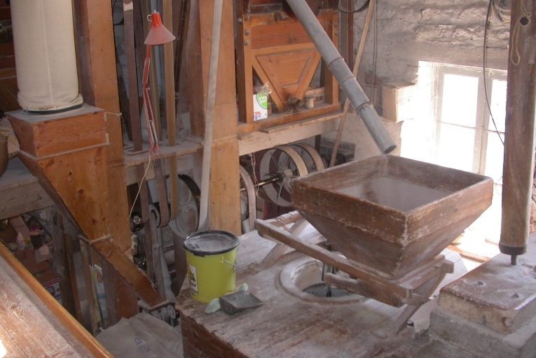 moulin de type artisanal, de plan allongé, abritant souvent le logement du meunier à son extrémité (type A1)