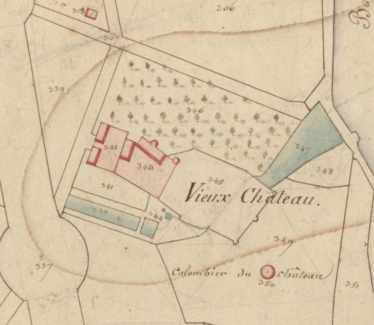 Parties constituantes non étudiéesmur de clôture, cour, jardin, colombier, chapelle, ferme, vivier, fossé