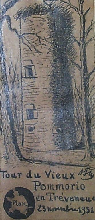 « Le château est de construction moderne ; il est spacieux, de bon goût, mais il n'offre rien de remarquable au point de vue de l'art. Sa façade donne sur une cour d'honneur, vaste et bien sablée. Le jardin est à droite ; à gauche sont les écuries ; derrière est le parc. On y arrive par de larges avenues plantées d'arbres séculaires du plus bel effet (...). Le jardin de Pommorio est vaste ; c'est un carré long divisé en deux parties, dont la première forme terrasse. Il est entretenu avec soin et renferme quelques arbustes et quelques fleurs rares ; néanmoins il est plutôt disposé en jardin potager qu'en jardin d'agrément. On y entre par une belle grille en fer, ouvrant sur la cour d'honneur, du côté de la maison du jardinier et sur le même plan. Un salon, qui est au rez-de-chaussée, communique de plain-pied avec ce jardin, par une porte pratiquée dans l'un des pignons du château. Le parc, avons-nous dit, est situé derrière le château : il en est le plus bel ornement sans contredit (...) » (Benjamin Jollivet, millieu du 19ème siècle). L'entrée du château du Pommorio est située face à l'église paroissiale de Tréveneuc. Ce portail dessert une longue allée donnant accès à une cour intérieure dont l'entrée est matérialisée par un portail précédé de fausses douves permettant de draîner les eaux pluviales et par deux bâtiments latéraux, dont un, celui de droite, est une chapelle. Le corps de logis principal est une oeuvre d'architecte de style classique caractérisée par une composition symétrique. C'est une construction de type ternaire à neuf travées, comprenant quatre pièces au rez-de-chaussée et une cage d'escalier centrale enfermant un escalier tournant à retours. Il est composé d'un corps de bâtiment principal à cinq travées, avec travée centrale affirmée par des chaînes appareillées en bossage et un fronton triangulaire orné d'un écu portant les armes des commanditaires, et de deux corps de bâtiments latéraux légèrement saillants à l'avant et à l'arrière. Il est ouvert sur les quatre côtés et présente une tour demi-hors-oeuvre sur l'élévation postérieure (rapportée vers 1850). La ferme située au sud du château est une ferme-modèle construite en granite, schiste et brique. L'ancien manoir, aujourd'hui disparu, comprenait selon toute vraisemblance un corps de logis de plan binaire avec tour d'escalier demi-hors-oeuvre sur l'élévation postérieure (d'après le cadastre de 1822). Le colombier était de section circulaire et couvert d'une coupole appareillée en maçonnerie.