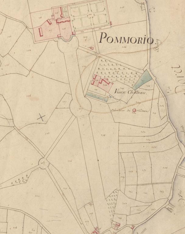 La seigneurie du Pommorio était selon Henri Frotier de La Messelière « une vicomté d'ancienneté relevant du comté de Goëlo, avec manoir, chapelle et colombier près de l'avenue du nouveau château reconstruit et agrandi aux 18ème et 19ème siècles, juridiction et prééminences dans la chapelle Saint-Marc, à la famille Chrestien de Pommorio de Tréveneuc du 15ème au 20ème siècle ». Le domaine du château du Pommorio comprend un corps de logis construit vers 1770 et agrandi au milieu du 19ème siècle, ainsi qu´une ferme construite au cours de la 2ème moitié du 19ème siècle. La documentation d'archive préliminaire atteste également la présence d´un manoir (signalé en ruine par Jean-Baptiste Ogée à la fin du 18ème siècle) et d´un colombier daté de l´année 1633 (disparu).