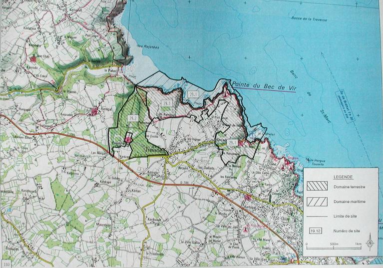 Les sites littoraux remarquables de la commune de Tréveneuc La commune littorale de Tréveneuc dispose de 25 km de côtes. La surface totale des sites littoraux de la commune de Tréveneuc est de 208 ha 42. Les falaises et abords couvrent 148 ha 75 dont 50 ha 26 sur le Domaine Public Maritime (en DPM). L'intérêt paysager est lié à la qualité agro-environnementale de l'agriculture (céréales) à proximité des falaises et de la géologie du massif gabbro-dioritique. La partie naturelle du site est classée. L'activité ostréicole est enclavée dans l'anse de Saint-Marc où elle utilise des anciens bâtiments de ferme dans le vallon de Saint-Marc. Il serait souhaitable d'éviter toute artificialisation supplémentaire du site et du trait de côte (constructions). Cependant, l'aménagement d'aire de repos et de sanitaires, la mise en place d'une signalétique particulière, pour les randonneurs pédestres, envisagé par la commune est de nature à préserver le site. Cette initiative va de pair avec la restauration des espaces dégradés et l'entretien du sentier douanier (GR 34). Les bois privés de Pommorio couvrent 59 ha 68 ; ils représentent un intérêt paysager et biologique (boisements caractéristiques de zones littorales abritées). La partie naturelle du site est classé. Le maintien de boisements de feuillus diversifiés est souhaitable.