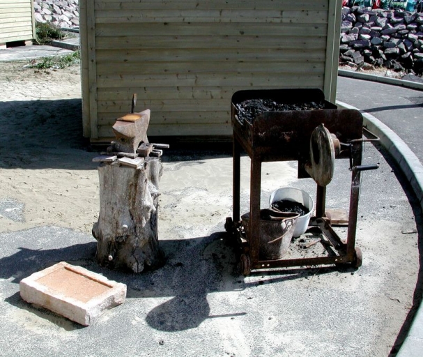 Ce modeste bâtiment, qui abritait la forge de la carrière, situé au-dessus du port (sur le sentier de randonnée), était utilisé par les ouvriers carriers pour forger leurs outils. Il date probablement de la fin du 19ème siècle. Le bâtiment est situé sur le site départemental du cap d'Erquy. Un ouvrier avait besoin de deux brouettes de burins par semaine. Deux matinées de forge étaient nécessaires au tailleur de pierre pour forger ses outils. Les outils, sauf la boucharde, ont souvent besoin d'être reforgés. Tous les deux jours environ, un tailleur, qui est aussi forgeron, les refait sur l'enclume. La meilleur eau pour la trempe est l'eau salée. L'un des outils les plus fréquemment utilisés est le martyr, qui sert à dégager les pierres de la carrière. Il porte ce nom car il est souvent "sacrifié" tellement il reçoit des coups de masse.