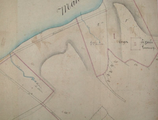 Mairie d'Erquy. Extrait cadastral 1810, 1846 : corps de garde de Lanruen (580 B).