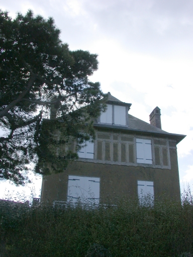 Cette maison de plan rectangulaire massé à un étage carré est construite en grès et couverte d'un toit en pavillon. La façade postérieure est orientée vers la mer. Le gros-oeuvre est recouvert d'un crépi avec un faux pan de bois en ciment à l'étage. Eléments de décor : toit en pavillon, épis de faîtage en zinc, faux pan de bois, évents de ventilation des souches de cheminées.