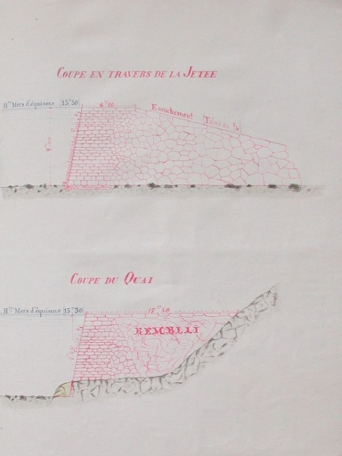 AD Côtes-d'Armor : S. Supl. 184. Plan en travers et en coupe du quai, 1887 (AD 22).