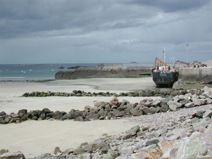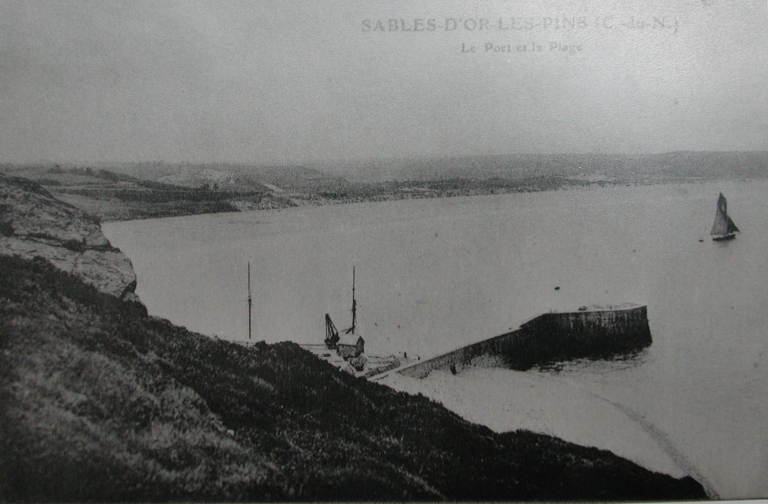 Port Barrier Le 12 novembre 1887, Barrier demandait une concession dans la baie du grand Douët, (entre le Grand Douët et la pointe de l'Assiette, au nord de la grève des Fosses), afin d'y établir une jetée-abri. En 1892-1893, pour faciliter l´embarquement et l´exportation des matériaux d´extraction, l'entrepreneur Barrier faisait édifier à l´est de la grève de Minieu (à l'est de la plage de Sables-d'Or), un port qui se composait d´une jetée-abri, d´une longueur de 70 mètres, suivie d´un quai long de 80 mètres qui s´enracinait dans la falaise ; la jetée consistait en un mur de 3 mètres de largeur au sommet, construite avec du mortier de ciment, de chaux hydraulique et de sable. Ce port était le lieu d´expéditions quotidiennes de 100 tonnes de produits tirés de la falaise. En 1893, cinq logements et un logement-bureau furent édifiés à la Carquois, une forge à la Fosse en 1897 et une nouvelle forge en 1901. Au début du 20ème siècle, les seuls produits fabriqués à partir de l´extraction de grès quartzite rose à grains fins, étaient des pavés et du macadam expédiés par bateau depuis la carrière la Carquois où se trouvait le port Barrier. L´expédition s´effectuait par bateau au départ des carrières ; les pavés étaient conduits par wagonnets Decauville au port Barrier. Plus tard, la construction de la ligne de chemin de fer Yffiniac-Matignon-Lamballe-Pléneuf permit d´exporter les produits sur Paris, via Lamballe sans passer par la voie maritime de Saint-Malo. Mais le port Barrier commençait à décliner. En 1938, une usine d´enrobage produisait encore du gravier, des pavés mosaïques, du sable ordinaire et des concassés pour le marché breton. Après 1950, la Société des Carrières de l´Ouest, qui exploitait le site depuis 60 ans, s´orienta dans la production de matériaux destinés à la fabrication du béton. De 1952 à 1994, le port Barrier fut en déshérence. Jusqu´en 1990 la société des carrières, devenue Carrières de Fréhel, continua d´évoluer au rythme des nouvelles technologies et des nouveaux matériaux mis en œuvre dans les travaux de génie civil. La société fournissait toutes les centrales à béton de la région, entre Saint-Malo et Paimpol. De 1994 à 1995, bénéficiant d´un important chantier d´enrochement à jersey, la société reconstruisit son ancien port qui lui permet encore aujourd´hui d´effectuer d´importantes exportations sur toute la Cornouailles anglaise (30% de sa production).