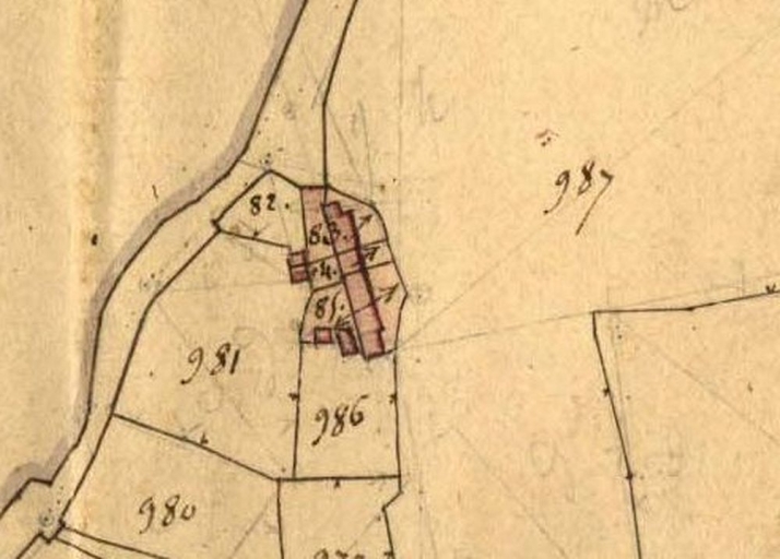 Ensemble de quatre maisons en alignement construites en grès et en granite.