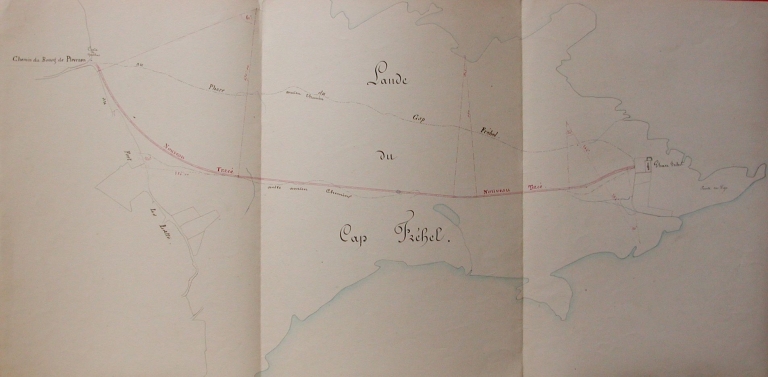 Un plan général de la lande de Fréhel fut dessiné par le conducteur De Gauffier en 1851, dans la perspective de réaliser une route de communication à travers la lande de Fréhel, de Plévenon au phare. Cette route large de 5 mètres et longue de 2300 mètres fut aménagée en 1854. Par acte notarié du 20 mai et du 1er juin 1882, la commune de Plévenon vendit la lande de Fréhel (AD 22, série 3E 56/88), soit un espace de 326 hectares, 74 ares et 57 centiares (en section A 1ère feuille). Les 5 parcelles, suivantes étaient vendues aux enchères à Ariane Montesquiou de Pessensac, comtesse de Joyon (Paris) : les Vaux du Cap, les vaux du port, Gohas, Besnard, Croix Gohas (AD 22 3E 56/88), où l'on peut situer la carrière des Sévignés ou des Fontaines. Le site a été classé en 1943. Les landes de Fréhel ont été rachetées par la commune en 1952. Proches des deux phares de Fréhel, les ruines de l'ancien sémaphore et de la chapelle, dont un capitaine au cabotage Etienne Piou avait financé la construction au milieu du 19ème siècle, sont à peine visibles. Les autres édifices présents sur le site sont représentés par des blockhaus et d'autres édifices militaires de la seconde guerre mondiale.