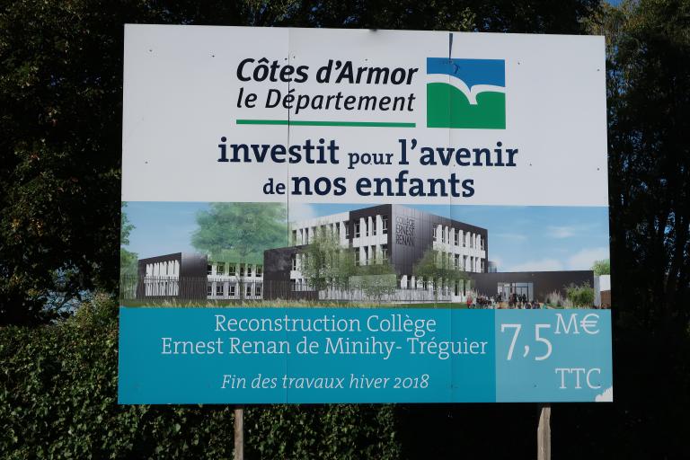 C'est sur le territoire de Minihy-Tréguier qu'a été implanté le collège Ernest Renan. Le nouveau collège a été inauguré le 18 mai 2018 (réhabilitation/restructuration des bâtiments d'enseignement et agrandissement comprenant la restauration, les sanitaires et le préau). Livré fin 2017, ces bâtiments construits par le département des Cotes-d'Armor ont une capacité de 600 élèves (il accueille actuellement 450 élèves). Les équipements sportifs ont également été rénovés ainsi que l'entrée du collège qui a été déplacée.