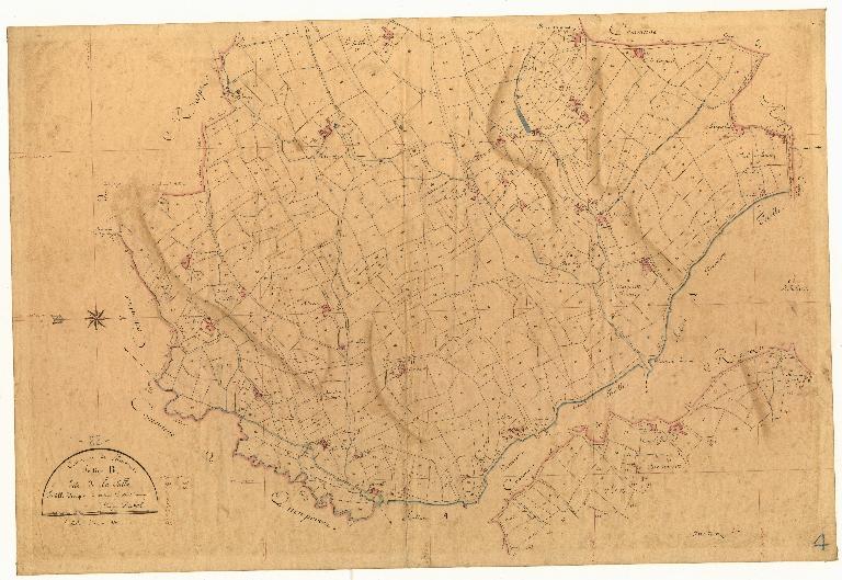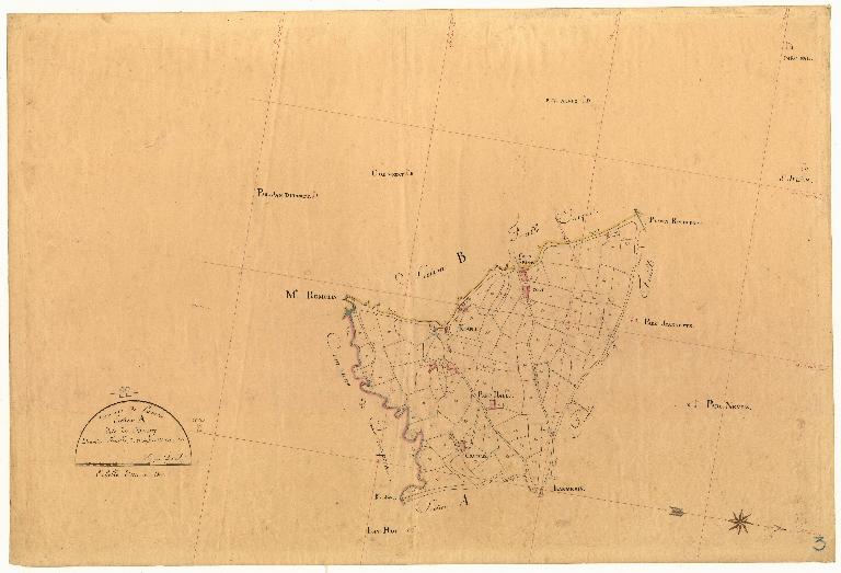 Série 3 P. Fonds du cadastre ancien. Tableau d'assemblage et plans parcellaires de la commune de Lanmérin, 1834.