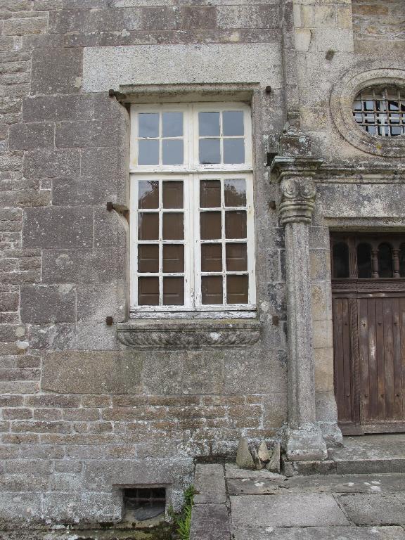 de témoigner de vestiges remontant au 15e siècle. Les parties les plus anciennes, visibles de l’extérieur, sont datables de la fin du 16e siècle ou du début du 17e siècle, comme en témoigne les décors empruntés au répertoire ornemental de la Renaissance (porte à pilastres cannelés et chapiteaux de style composite, appuis des fenêtres moulurés à godrons…). Les façades semblent avoir été reprises en plusieurs campagnes, l’une d’elle de la fin du 19e siècle, datée 1881 correspond à une reconstruction de la partie droite sur la cour. Le style composite de cette reconstruction témoigne de l’esprit éclectique des architectes de cette période attiré par le pittoresque des formes et les volumes complexes.