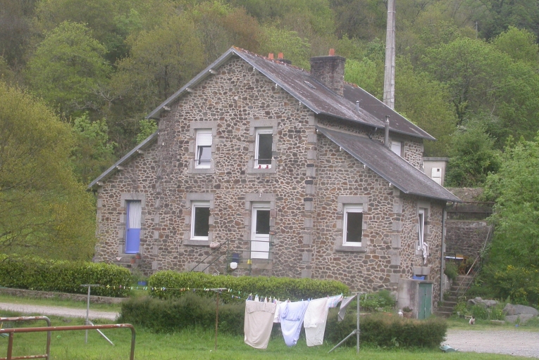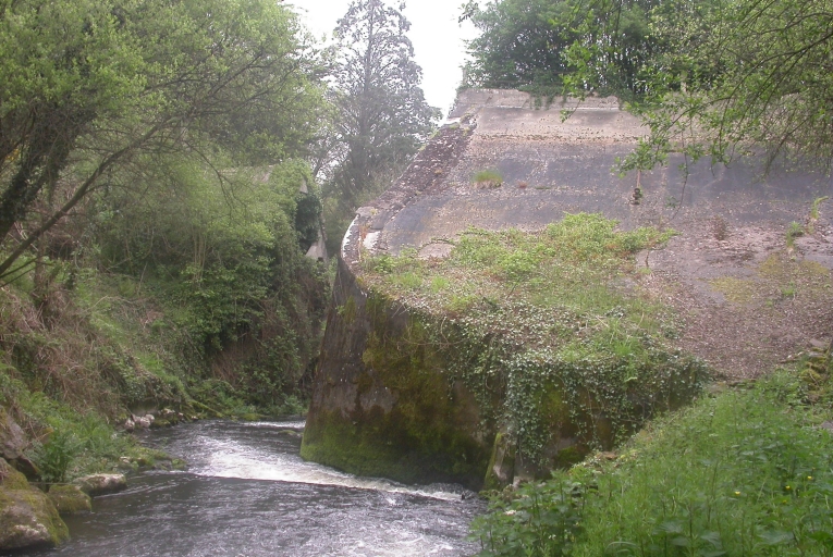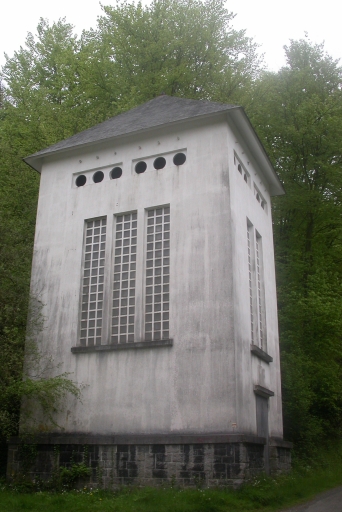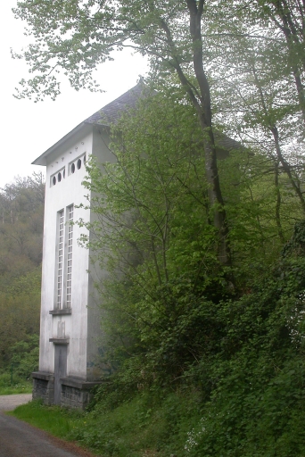 Le barrage proprement dit est maçonné en béton. Il servait à alimenter une centrale construite en rez de chaussée avec une ossature de béton armé et remplissage de parpaing de béton qui possède un toit à lanterneau couvert en tôle ondulée. Sa façade antérieure est éclairée par deux hautes fenêtres à encadrement de béton. On y accède par une porte surélevé précédée de quatre marches. Derrière le bâtiment d'usine, sur le talus qui longe la route, on distingue une cheminée en tôle rivetée. Il s'agit probablement de la cheminée d'équilibre qui permettait d'évacuer l'eau en cas de trop forte pression dans les conduites. De l'autre côté de la route un transformateur électrique permettait d'envoyar la production vers les consommateurs. Il est enduit, avec une base en granite, et est surmonté d'un toit en croupe. Il est éclairé par de hautes fenêtres étroites. En aval de l'usine, a été construite une habitation pour les employés. Elle comporte deux unités distinctes. Elle est en moellon de grès et ses ouvertures ont un encadrement en granite. Elle comporte une cave, un rez-de-chaussée surélevé et un étage carré. Ce bâtiment est flanqué de part et d'autre de son pignon d'un appentis composé d'une cave et d'un re-de-chaussée surélevé.