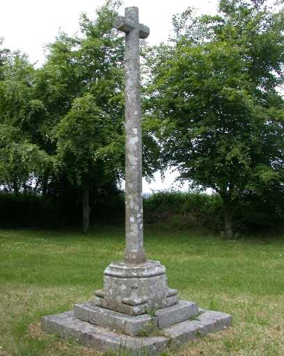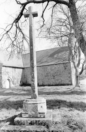 Croix sur socle et soubassement en granite. Elle est composée d'un soubassement formé par un emmarchement à deux degrés, d'un socle à griffes mouluré au sommet et d'un haut fût de section octogonale restauré et sommé d'une croix rapportée.
