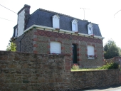 Maison de type ternaire à cinq travées construite en granite, schiste et brique. Eléments de décor : appareil à mise en oeuvre diagonale à l'avant, effet de polychromie résultant de l'emploi de matériaux à deux tons, corniche à modillons, porte en plein cintre.