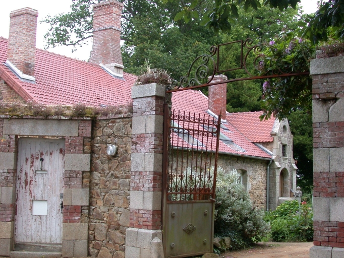 Maison de type ternaire à cinq travées et à volumétrie importante construite en granite, schiste et brique sur un plan double en profondeur. La porte d'entrée est accostée de deux portes et la travée axiale antérieure est couronnée d'un pignon. Eléments de décor : toit à croupes, épi de faîtage en zinc, pignon, effet de polychromie résultant de l'emploi de la brique (frise, souches de cheminée, encadrement des baies et chaînes d'angles).