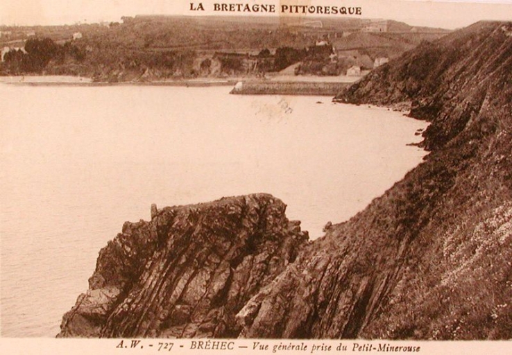 De la pointe de Minar à la pointe de Plouha, qui est à 4 milles dans le sud, la côte est accore et élevée, et forme une baie peu profonde, où se trouve l'anse de Bréhec, et au sud-est d'elle une plage de près de 2 milles de long. Ces deux plages sont séparées par la pointe de la Tour, à l'est-nord-est de laquelle se trouve à 1/2 mille le "Taureau" (6 m), rocher surmonté d'une tourelle peinte ne noir du côté de l'ouest et en blanc sur les autres faces. Cette tourelle est sur la partie sud-ouest.