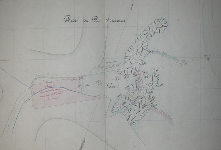 Le sommet de l'église de Plouha est considéré comme un point apparent, le tertre Run ar Beler de l'ancien moulin qu'on devrait rétablir ; la propriété Bernard, maison à croupe à six fenêtres de façade, volets rouges ; la chapelle de la Trinité, Gouine Zégal, les Pierres Blanches, le palus de Plouha, le petit bois du pavillon du Courson, qui est dans l'intérieur, le clocher de Tréveneuc, la coupole de Notre-Dame de la Garde de Kertugal, et le moulin Malgré-Tout, en haut du versant nord de la pointe du Bec de Vir.