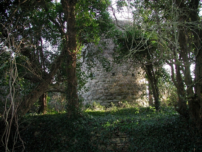 Tour à encorbellement située sur un tertre en terre, empierré. Le moulin, construit en moellons de granite, a perdu ses étages, mais dispose de plusieurs ouvertures, en partie murées, situées au rez-de-chaussée : 1ouverture murée à l'ouest et 1 ouverture à l'est. A 2, 50 m du sol : 1 ouverture à l'ouest et 2 ouvertures murées au sud, l'une au-dessus de l'autre. A environ 8 m de hauteur, orienté sud-est une ouverture au-dessus de l'entrée principale. Linteau en bois au-dessus de la porte d'entrée est. Les deux portes d'entrée de l'édifice sont placées symétriquement et mesurent 1, 70 m de hauteur sur 1 m de largeur.
