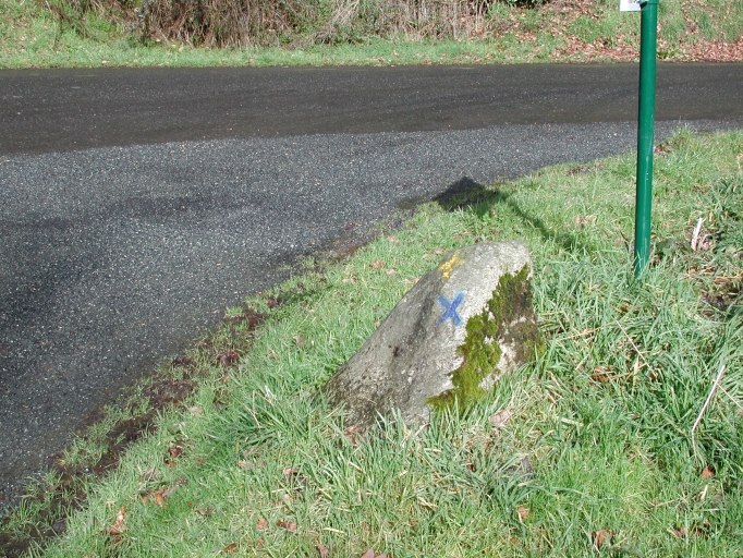 Borne milliaire, taillée dans le granite, en forme de cône, à base très élargie. Elle a certainement été abimée par des engins mécaniques. Ses mesures ne sont certainement pas celles d'origine (plus importantes). L'ancienne voie romaine est bordée de murs-talus, empierrés.