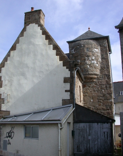 Maison remaniée construite en granite (blocs et gros moellons). Conçue sur un plan rectangulaire simple en profondeur, elle est composée de deux pièces au rez-de-chaussée et d'un étage carré et comprend, au centre de l'élévation postérieure, une tour carrée demi-hors-oeuvre abritant l'escalier de distribution. Cette tour, dont les murs arrivent au niveau du faîte du toit principal, possède, en outre, au sommet un escalier latéral secondaire en léger surplomb. Eléments de décor : corniche, porte en plein-cintre, pignons à rampants assisés et à crossettes.