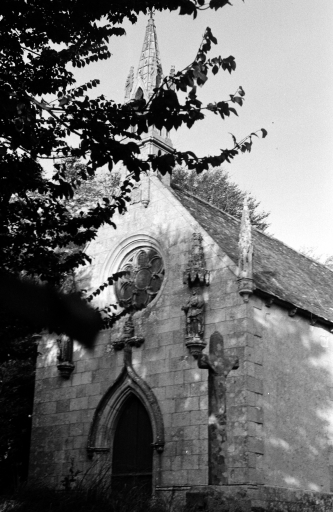Chapelle funéraire de la maison Nompère de Champigny, propriétaire du château de Kerduel à partir de 1827, reconstruite selon René Couffon en 1844. Benjamin Jolivet indique, au milieu du 19ème siècle, qu'elle est "de construction moderne". Elle comprend une croix du 17ème siècle (datation incertaine) portant la date 1859 (date d'un remontage) et l'ancien logement du chapelain datant probablement du 17ème siècle. Les statues de saint Antoine et de saint Louis ornant le pignon occidental ont été réalisées par le sculpteur Yves Hernot fils (signature) et dateraient, par conséquent, de la 2ème moitié du 19ème siècle.