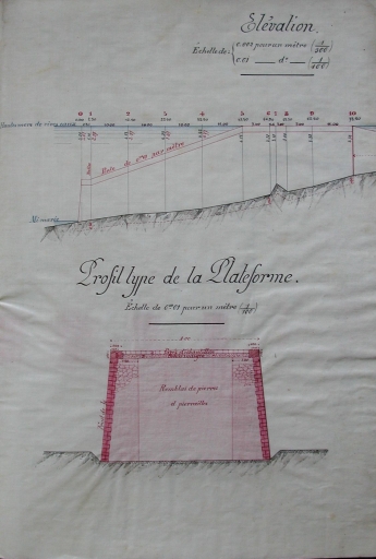 La cale en projet selon le plan de Lasne et Adam, devait s'appuyer sur le rocher dit le "Rudulu", de 8 mètres de hauteur, et devait disposer d'une plateforme insubmersible et d'une rampe d'accès rampante de 43, 50 mètres de longueur et de 5 mètres de largeur, terminée par un musoir, avec une inclinaison de 0, 07 mètre. Cet ouvrage devait faire un angle de 40° avec le nord magnétique. Il serait construit en moellons de granite et en béton.