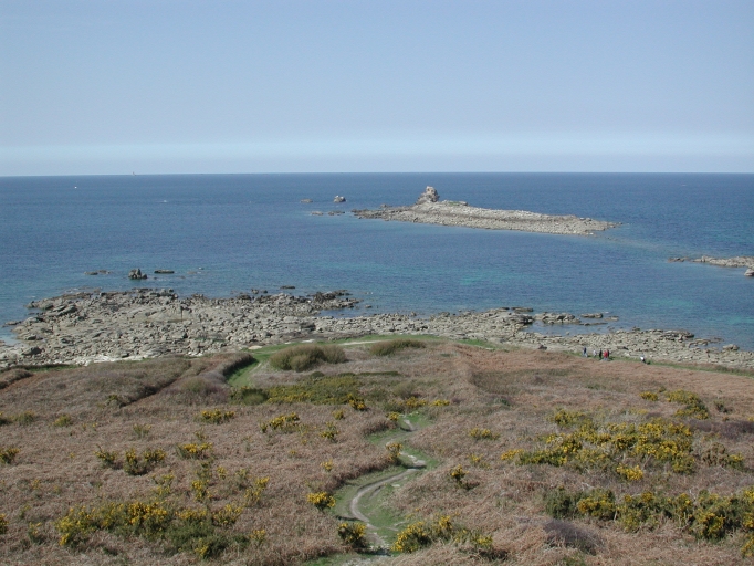 L'îlot du Corbeau (appelé "Castel Vran") a été le site d'une importante carrière à la fin du 19ème siècle, non pas sur le rocher lui même, à la pointe, mais sur l'isthme formé de gros blocs de pierres, submersible. Un ingénieur civil Fumet avait obtenu en 1888 une concession sur le site pour y établir une forge et un abri pour 15 ouvriers, afin d'extraire 30 m3 de granite. L'administration des Ponts et Chaussées avait même accepté de vendre l'île (non cadastrée), déclarée d'aucune utilité publique pour le service maritime, mais l'Etat refusa. Cependant, la largeur totale de cette presqu'île, à mi-distance entre la terre ferme et le rocher, a été réduite des trois quarts par cette exploitation. L'abaissement général de la surface de cet obstacle a participé de la propagation des houles d'ouest vers Pors Gelen et l'érosion de la côte, dont le cordon de galets de an Ervilio. Ce cordon de galets n'avait pu être exploité car la rocher était masqué par les galets et inatteignable. La destruction par l'activité des carriers de la protection qu'offrait à ce secteur le pédoncule du Corbeau, a transformé complètement les conditions anciennes, et là, où autrefois, un cordon galets était en équilibre avec le milieu, cet équilibre est aujourd'hui rompu. Près de la côte, le granite est du type Ile Grande, c'est à dire gris ou bleu à mica noir. En s'éloignant vers la pointe, c'est-à-dire vers le nord, il se charge en mica blanc, comme on l'a déjà constaté à Kastell Erec. Petit à petit l'amoncellement des blocs roulés diminue d'importance ; le niveau atteint par l'exploitation baisse et s'étend en surface. Bien que n'étant exploitable qu´à marée basse, l'extraction sur ce platier était si importante qu'un bâtiment avait été construit pour abriter une forge sur le seul point de l'île qui soit plat et en hauteur (altitude : 6 m, carte IGN), si intense qu'on s'étonne que reste encore présent un gros chicot de roche. Sans doute les marins avaient-ils demandé qu'on l'épargne pour conserver un amer bien repérable. Les archives municipales apportent la preuve que dès le 19ème siècle, les carriers avaient le droit d'exploiter la pierre à l'île au Corbeau à une condition : qu'ils soient habitants de l'Île-Grande. A regarder l'étendue des chantiers, ils en ont profité. Quand cessa l'exploitation ? Sans doute le jour où les marins se refusèrent à échouer leurs "coucous" sur la grève pour charger le granite car il n'y avait pas de chemin permettant de le charroyer jusqu'à un quai d'embarquement. Roic exploita une des deux carrières de la pointe du Corbeau jusqu'en 1990 et les frères Rodriguez la seconde jusqu'en 1980.