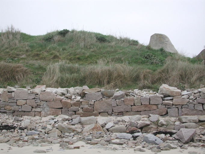 Nous avons repéré de nombreux murets littoraux et des murs de clôture de parcelles autour des espaces insulaires de l'Île Grande, en bordure de la grève et des marais littoraux et en amont des dunes de sable. Ces murets sont datables du 19ème siècle. Nous avons étudié particulièrement un mur de clôture rue Joseph Conrad.