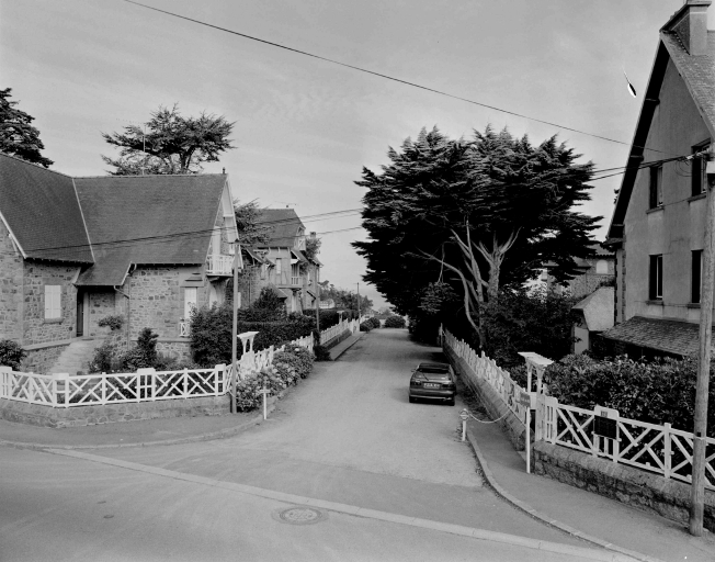 Le lotissement est caractéristique de ceux qui se greffent le long de la route en corniche dans les années 1930, où la voie privée du lotissement est sans issue. Les villas sont construites en coeur de parcelle, en moellons de granite laissés apparents. Les façades exposées aux intempéries sont enduites, et certaines possèdent un faux pan de bois en façade antérieure. Leur style est homogène, le même architecte ayant construit trois d'entre elles. Les maisons présentent un soubassement avec garage qui n'est jamais visible depuis l'allée privée où seules sont orientées les portes d'accès. La vue sur mer est recherchée grâce à des pans coupés, des bow-windows et des balcons.