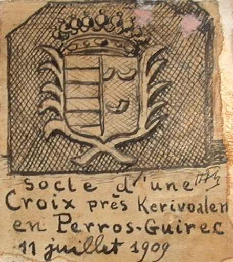 L'écu figurant sur le socle de cette croix ressemble à celui relevé le 11 juillet 1909 par le vicomte Henri Frotier de La Messelière sur le socle d'une croix située près de Kerivoalan.