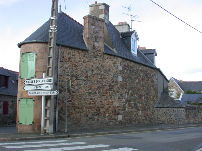 Maison édifiée sur une parcelle d'angle à l'intersection de deux rues. Elle comprend un logis mitoyen à pièce unique au rez-de-chaussée et à deux travées en façade antérieure, prolongé à droite par un logis à pièce unique au rez-de-chaussée présentant une travée d'angle semi-circulaire à l'intersection des deux rues et une souche de cheminée sur le mur postérieur. La travée d'angle est édifiée en grand appareil de granite rose. Elle est coiffée d'une croupe ronde sommée d'un épi de faîtage en zinc. L'élévation postérieure est aveugle.