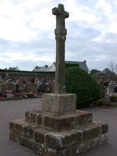 L'actuelle croix de cimetière est une ancienne croix de chemin, dite de Kroaz an Escop, érigée à l'initiative d'Yves Le corre en 1783 (porte la date), déplacée en 1937 (datation par travaux historiques). Son emplacement d'origine figure sur l'extrait du cadastre de 1819 annexé en illustration.