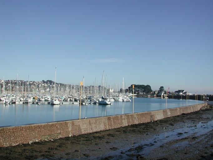Le port de Perros-Guirec était délimité en 1848, au sud par la jetée ou éperon de la Douane, longue de 55 mètres avec une cale large de 7 mètres, avec un quai en retour de 125 mètres et un terre-plein pour les goémoniers et sabliers, et au nord par la digue-jetée du Linkin, longue de 149, 30 mètres et large de 5, 50 mètres. En 1880, une digue circulaire rentrante délimitait le fond ouest du port, avec un chemin de ceinture, non accessible aux bateaux, mais uniquement aux charrois, et protégeait un bassin de chasse, équipé seulement en 1914 d'une vanne, mais non totalement étanche. C'est ce port à échouage dont héritèrent les élus de la commune en 1930, pour développer 40 ans plus tard un autre projet de bassin à flot pour la plaisance, réalisé en 1967, sous le mandat de Yves Le Paranthoën.