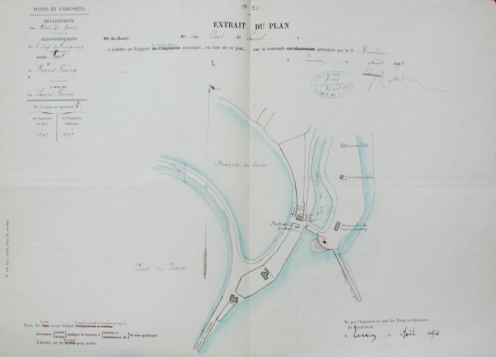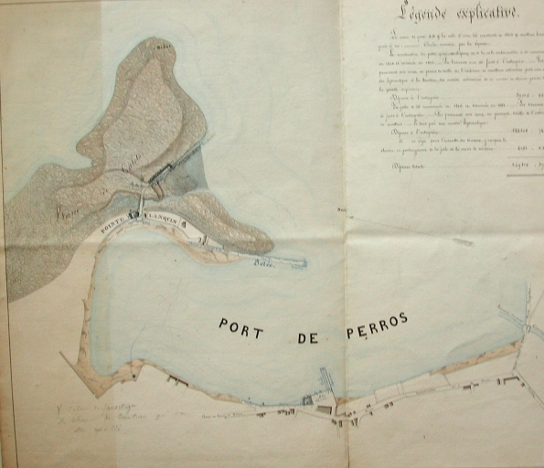 Archives Nationales : CP F 14/10259 (10) . Perros-Guirec (Côtes-du-Nord). Plan du port de Perros, des ouvrages à exécuter par Mequin, ingénieur des Ponts et Chaussées, 7 décembre 1843.