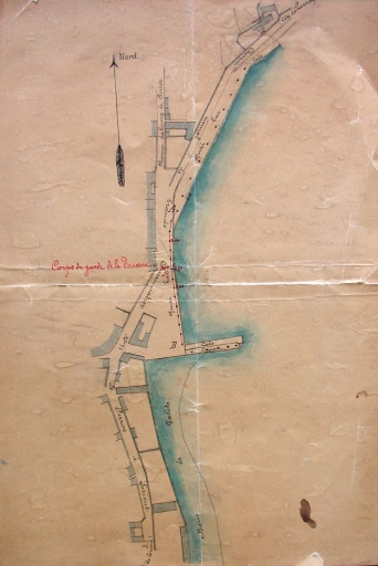 Les premiers quais du port de Perros-Guirec ne sont pas datés précisément, mais sont certainement antérieurs au 1er quart du 19ème siècle. Ces quais submersibles débordaient largement le bassin actuel et étendaient les limites de la rade d'échouage jusqu'aux maisons des armateurs et les magasins des négociants (sur plusieurs centaines de mètres). Les caboteurs et autres navires longs-courriers pouvaient venir échouer directement contre ces quais. Les premiers plans dont nous disposons permettent de caractériser les nouveaux ouvrages construits entre 1854 et 1874. La cale ouest avec son éperon et la digue-jetée du Linkin, projetés en 1838, furent les premiers ouvrages construits vers 1850-54, avec la cale du Ch'raou au nord, en 1861, prolongée en 1868. L'élargissement des quais et la réalisation de plusieurs terre-pleins et perrés étaient déterminés par le besoin de stockage des amendements marins, activité principale du port. Il fallut attendre l'année 1906 pour qu'une cale fut dessinée à l'usage des marins-pêcheurs à Loténo, consécutivement au projet de construction d'un abri pour le bateau de sauvetage. Cependant, ce projet spécifique ne fut pas réalisé et la cale du Ch'raou continua d'être utilisée par les marins pêcheurs et comme cale de lancement pour le canot de sauvetage. En 1874, les quais de l'actuel boulevard Anatole Le Braz furent construits, ainsi que des quais bas pour le déchargement des bateaux goémoniers. Le chemin de fer longeait les anciens quais de la rade, mais n'atteindra pas le quai du Linkin au début du 20ème siècle (1906), ce qui aurait faciliter le déchargement des navires et éviter l'utilisation de tombereaux. La route de la Corniche empruntait le passage des quais et passait sur la chaussée du bassin de retenue, avant d'atteindre le bord de mer jusqu'à Trestrignel. D'autres projets de quais furent dessinés pour joindre la jetée du Linkin à la digue du bassin de chasse et jusque la jetée sud de la douane, sans succés.