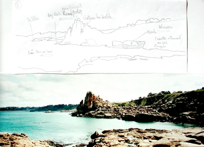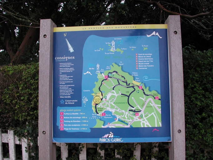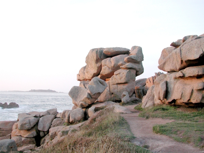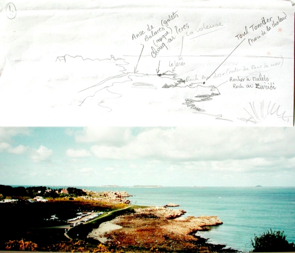 L'appellation Côte de Granite Rose selon les témoignages oraux, prendrait naissance à Ploumanac'h, par le travers du "Laeres " (la Voleuse), au lieu dit "Ballaren " ou "Balaren Vihan", "la Petite poêle", petite crique de galets à l'ouest de la Herés ou Laeres (la Voleuse), pour se terminer à Gavros (la "Grève Rose") en Trégastel (extrait du rapport du SMVM de la Côte de Granit Rose, J.P. Pinot, 1993). La commune de Perros-Guirec comporte une grande variété de paysages, qui font son attrait touristique. Le littoral nord comporte plusieurs unités géomorphologiques, d'ouest en est : - le port de Ploumanac'h et son goulet d'entrée - la plage de Ploumanac'h, dite de Saint-Guirec - les roches au nord de Ploumanac'h - la côte rocheuse du Sentier des Douaniers, entre le Squével et la plage de Trestraou - la plage de Trestraou - les rochers du Sphinx - la plage de Trestrignel - la Pointe du Château. Le Parc municipal de Ploumanac'h, déclaré d'utilité publique en 1925, fut inscrit à l'Inventaire des Sites le 6 avril 1945. Il est le résultat d'un combat collectif, initié dés le début du 20ème siècle par des personnalités du monde artistique et culturel, comme Charles Le Goffic, délégué de la Société des Paysages de France, auprès du Syndicat artistique de protection des sites pittoresques de Ploumanac'h (créée en 1901). C'est sous l'impulsion de Henri Grosperrin, "militant écologiste avant l'heure, que fut réalisé en 1907 le premier sentier douanier de la Côte de Granite Rose, avec le concours et le soutien de la municipalité de Perros-Guirec. Le sauvetage de la vallée des Traouiëro et des espaces côtiers du Parc municipal, représentait au début du 20ème siècle, une opération unique et pilote en France : 7 ha 5 d'espace public protégé, dont la 1ère parcelle (D 533), fut également classée en 1912. Certains autres sites bénéficient également de protection : le 11 juillet 1912, une portion de terrain proche de Pors Rolland est classée, l'anse Saint-Guirec et le massif de Crech-ar-Cham sont inscrits le 8 avril 1937, le 9 octobre 1940, la lande de Ranolien est inscrite. En 1925, la création d' un parc municipal à Ploumanac' h est déclarée d' utilité publique, la totalité des expropriations est achevée en 1931 autour du rocher Le Squewel. Il est finalement inscrit le 6 avril 1945. En 1940, une zone non-aedificanti est décidée dans un périmètre de 200 mètres autour du phare. Le centre de l' écart, source de pittoresque pour Perros-Guirec, est peu modifié. Le Plan d' aménagement d' extension et d' embellissement (PAEE) de 1933 précise d' ailleurs que le village ne doit pas être transformé. Afin de faire face à l' afflux de touristes, la chapelle est agrandie en 1938 par l' architecte James Bouillé L'ensemble du site constitué de chaos granitiques, de landes côtières et de pelouses est aujourd'hui la propriété du Conservatoire du Littoral. Le site littoral de Ploumanac'h a été doté d'aménagements légers, réalisés avec la pierre du pays, le granite de la Clarté, les murets littoraux ont été reconstitués. Le travail d'interprétation de la toponymie maritime et littorale en cours est l'oeuvre de Pierrette Ollivier, grâce au témoignage de Pierre Le Gaouyat et de Marcel Briand. Les travaux de cette enquête ont été recoupés avec ceux de Alain Le Berre et de Abel Omnes (CNRS, 1973). Ce travail d'inventaire de la toponymie permet de mieux saisir le phénomène d'appropriation à la fois pratique et symbolique de ce territoire terrestre et maritime (faisant partie du foncier maritime), par ceux qui habitent de façon permanente la côte et qui ont su tirer partie de ses ressources halieutiques. La nomination d'un lieu et sa description de façon différentielle et précise le fait exister, lui donnant une fonction de repère mémoriel des limites. L'approche esthétique d'un paysage, est dans ces conditions doublée, rattrapée par une approche plus ethnologique, où le projet social n'est pas exclu. Ces monuments naturels, qui ont failli être exploités de façon sauvage par la pression immobilière au début du 20ème siècle, ont été protégés par la loi, mais ont rarement retenu l'attention sur les usages dont ils étaient l'objets, usages rattachés des histoires qui les ont faits nommer et identifier, de façon sélective (rochers liés aux histoires des marins-pêcheurs et goémoniers de Ploumanac'h).
